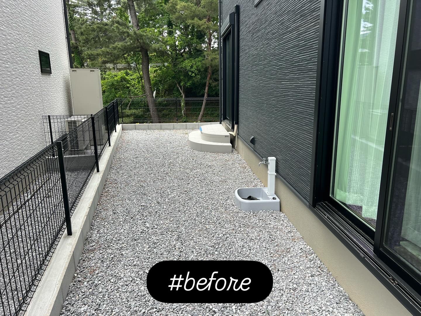 砂利を撤去し人工芝を施工。